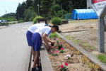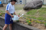 健康委員会奉仕班の花植え |