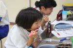 1限に1年生を対象に歯科指導を行いました。カラーテスターを使って、磨き残しのチェックをします。歯のつけ根の方に磨き残しのある生徒が多くいたようです。その後に鏡をみながら丁寧に歯磨きをしました。永久歯に生え変わったら一生もの!自分の歯を大切にしていきたいですね。