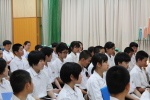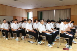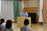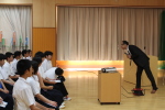 総合的な学習の時間の中で、ナレッジメントデザインの加藤誠さんをお呼びして職業講話をききました。どの生徒も自分の将来について考えながら真剣な表情できいていました。「今からでもできる『責任感をもって行動すること』、『当たり前のことを最後まですること』を心がけたいと思った。」、「自分は将来こうなりたいということを真剣に考えたことはなかったので自己分析をしてみて、少しでも興味のもてるものが出てきたらいいと思った。」など、それぞれに感想を述べていました。