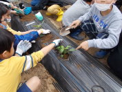 2年生は、昨日買ってきた苗を、仲間と協力して畑に植えました。 教師の植え方の説明を二人で確認し合いながら、心を込めて植えました。 自分たちの苗に名前も付け、これから世話をしながら、成長を観察していきます。