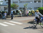 今日、育友会生活指導部主催の交通安全教室が実施されました。全校児童が、校区内3か所に分かれて、実際の道路を使って、1年生は歩行練習、2年生以上は自転車走行練習をしました。 市役所と安全協会の指導員の方から指導いただき、交通ルールを守った安全な自転車乗りについて学びました。 自転車は子どもたちにとって便利な乗り物です。ルールやマナーを守って、安全に乗ってほしいです。