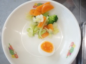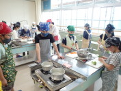 5・6時間目、5年生は家庭科「おいしい楽しい調理の力」の学習で、ゆで野菜とゆで卵に挑戦しました。 もうすぐ実施の自然体験教室の野外炊事の練習も兼ね、包丁の使い方や野菜の切り方、ゆで時間など、学びを深めました。準備や後片付けも大事な学習です。