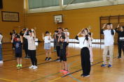 5年生は、講師をお招きし、脳と体を活性化「親子 de リズムジャンプ」をしました。いろいろなジャンプをしながら体を動かし、親子で楽しく運動しました。結構な運動量でした。