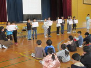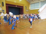 昼休みの応援練習は、今日が最後です。雨が降ったため、体育館で行いました。赤組も白組も気持ちの入った声で応援をしていました。応援リーダーも疲れを見せず頑張っています。本番が楽しみです。