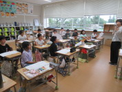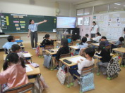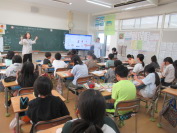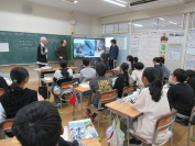 外国語の時間にアメリカからの留学生とオーストラリア出身の方が来てくださいました。アメリカやオーストラリアの国について映像で紹介してもらいました。また、6年生は自分の将来の夢を英語で伝えたり質問に答えたりしました。英語でたくさん話すことができました。
