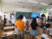 和泉小学校の5年生と交流会を行いました。学校紹介や自己紹介をしてもらい、鬼ごっこや借り物競争、ドッジボールなどを行い、みんなで楽しみました。帰るときには、みんなで一緒に写真を撮りました。みんないい笑顔でした。