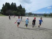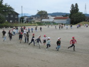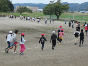爽やかな秋晴れの下、持久走記録会を行いました。子どもたちは、自分の決めた目標に向かって、全員が力いっぱい走りました。参加した児童全員が完走しました。たくさんの子どもたちが自己ベストタイムを出し、達成感を味わうことができました。