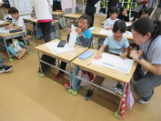 1年生は、5月から大切に育ててきたあさがおにお別れをしました。きれいに咲いてくれたことやたくさんの種を残してくれたことに感謝を伝えた後、つるを外して根っこを鉢から抜きました。採れた種を数えることにも挑戦し、10のまとまりを作って数えました。