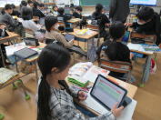 今月から学習者用端末がiPadに更新されました。5年生が早速、ログインし使っていました。ミライシードを活用して学習しています。操作がスムーズで反応も早く、使いやすいようです。