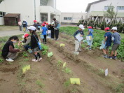 2年生は、生活科で育てている大根がどうしたら大きく育つのかみんなで話し合いました。そして間引きをした方がよいと意見がまとまり、みんなで間引きをしました。これから大根がぐんぐん育つといいですね。