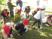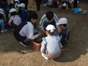 1年生は、どんぐりを拾いに小粟田に出かけました。道端にどんぐりがあるのを見付けるとみんな夢中になって拾いました。大きなどんぐりの木があるお宅にも寄せていただき、たくさんのどんぐりを拾いました。さて、1年生はこれからどんぐりを何に使うでしょうか?