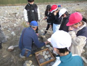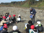 2回目の信濃川の見学です。今回は、理科センターの先生と川原まで行って信濃川の様子を間近で見学しました。上流、中流、下流の流れの違いや川原の石の種類についても詳しく教えていただきました。実際の見学で学ぶことがたくさんあります。