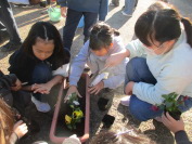 1・2年生も5年生に教えてもらいながらパンジーの苗を植えました。紅や黄、紫、白、青など様々な色のパンジーの花がかわいらしいです。卒業式にたくさん花が咲きますように。6年生のためにお世話をします。