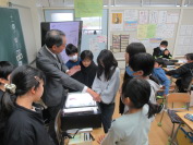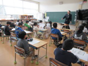 長岡技術科学大学の教授から放射線に関する講話をしていただきました。身近な食べ物などを通して放射線の話をしていただいたことで、子どもたちは放射線が身の回りにあるものだと認識しながら、関心をもって話を聞いていました。放射線測定器を使って様々なものの放射線量を測定したり、装置を使って放射線を目で見たりしました。放射線についてたくさん学ぶことができました。