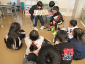 秋の読書旬間の取組で、いきいき班ごとに読み聞かせをしました。高学年が本を選び、いきいき班のメンバーに読み聞かせをしてくれました。どの班もお話に吸い込まれるように集中して聞いていました。学校でも家庭でもたくさん本に親しめるといいですね。
