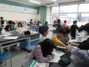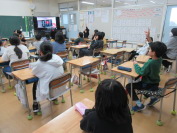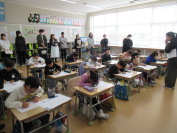 フランスの高校生4人が千田小学校に来てくれました。今日は、2年生と一緒に交流しました。フランスの小学校のことを教えてもらったり、質問をしたりしました。フランス語で数字とじゃんけんの仕方を教えてもらったりもしました。2年生は大喜びです。最後にみんなで写真を撮って、玄関まで見送りました。
