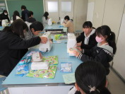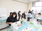 家庭科「ミシンで楽しくソーイング」の学習です。下糸の巻き方を覚えてから、実際に直線縫いをやってみました。縫い始めや縫い終わりの返し縫いもできました。失敗しても丁寧にほどいて、やり直しができました。ミシンを使う楽しさを感じています。