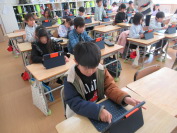 2年生は、iPadを使って漢字の学習していました。書き順や読み仮名などドリルやいろいろなアプリを使って集中してやっていました。操作もバッチリです。