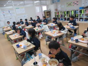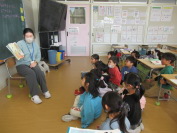 1年生は、国語の学習の最後に絵本の読み聞かせをしていました。読書旬間の取組で「ホントカ。」から学校に本を貸し出してもらっています。学校の図書室にはない絵本なので、子どもたちは興味津々、お話に吸い込まれるように聞いていました。明日で読書旬間は終わりますが、これからもたくさんの本に親しんでほしいと思います。