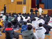 集会タイムに気持ちのよいあいさつと返事について、職員の劇を見ながら全校で考えました。また、あいさつのよい児童に元気なあいさつのコツやあいさつをしているときの気持ちなどを発表してもらいました。全校で学んだ後は、学級で実際にあいさつの練習をしました。寒くても元気にあいさつができるように頑張っていきましょう。
