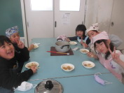 畑で採れた大根を使っておでんを作りました。大根の皮をピーラーでむいて包丁で切りました。他の具材も切って鍋に入れて煮ました。大根が柔らかくなって味が染みておいしいおでんをみんなでいただきました。大満足のおでんパーティ-でした。
