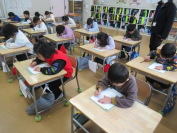 1年生と2年生は、硬筆での書き初めです。姿勢や鉛筆の持ち方に気を付けながら、一文字ずつしっかり丁寧に書いていました。集中して頑張った1・2年生でした。
