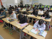 4年生は「光る空」、6年生は「白銀の道」です。冬休みに練習した成果を発揮して、お手本をよく見ながら集中して書いていました。12月よりみんな上達していました。