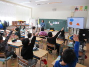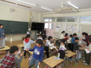 エクシル先生と一緒に楽しい外国語活動です。1年生は、数字や動物、あいさつや名前の言い方などゲームを通して楽しく活動しました。3年生は、歌を歌ったりアルファベットの練習をしたりいろいろな形の単語を学習したりしました。アルファベットを書いたり読んだり形の言い方もしっかり覚えて発音していました。