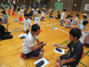 今年も、青少年赤十字中越地区トレーニングセンターが長岡市民体育館で行われました。千田小学校からは、奉仕委員会の5・6年生児童代表5名が参加してきました。班でレクリエーションをしたり、看護学生の体験談を聞いたり、防災コミュニケーションワークショップで体験活動や意見交流をしたりしました。他校の児童と交流しながらJRC活動についてたくさん学ぶことができました。この体験を2学期からの活動に生かしていきたいと思います。