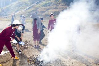 やきいも集会が始まると火が燃えている周りに線を描き、「危ないから入らないでね。」や、食べるときには「熱いから気をつけて。」と下級生に声をかけるなど、高学年らしさを見せていました。