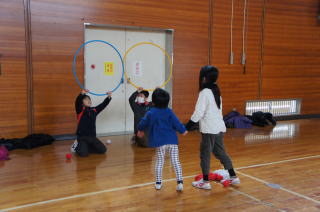 2月14日(木)新1年生との交流会でしっぽとりゲームと障害物レースをしました。
