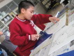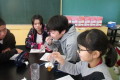 試験管に入った温かい魚と豚肉の脂の様子を観察しました。豚肉の脂のにおいをかぐと「わーくさい」という反応が多かったのに対して、魚の脂では「いいにおい」という声が多くありました。その後、試験管を冷やしていくと、目の前で豚の脂がどんどん白く濁り、とうとう固まってしまいました。それに比べて魚の脂はさらさらのまま変化がありません。お料理にラードが入っていると、おいしくなりますよね。しかし「肉の脂は食べ過ぎに注意だな。」とこれを見て感じました。しかも魚の脂に含まれるDHAは頭の働きをよくし、EPAは血液をさらさらにするということも教えてもらいました。