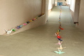 ろうかを走る人が多いということで、ろうかや階段に数百羽の鶴を置き、鶴を踏んだり蹴飛ばしたりしないように歩く人を増やそうという企画を総務委員会が行っています。 総務委員会を中心に作られたたくさんの鶴は、きれいに並んでいると優美な感じがします。色とりどりの折り鶴の横を“歩く”人が増えるといいですね。