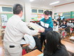 1月15日に小千谷市法人会の方から税金について教えていただきました。最初は少し緊張気味な子どもたちでしたが、発言する度に「賞与」と書かれた百万円メモ帳入りの封筒をもらえるので、みんながどんどん挙手をしました。また全員が1億円(約10kg)の重さを体感しました。一人の子どもが高校を卒業するまでに約1200万円の税金が使われると聞いて、身の引き締まる思いでした。無駄遣いと言われないようにしっかりと教育しなければいけませんね(笑)。世間はキャッシュレスの時代になろうとしています。今こそ子どもにお金の重さを実感して欲しいという願いを感じ取ることのできた授業でした。