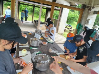 写真が前後しましたが、飯盒炊爨の調理の様子です。幸いにも天候に恵まれ、これから行う妙高アドベンチャーも屋外実施となる予定です。