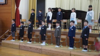 4月9日(火)に17名の新入生を迎え、入学式を行いました。昨日とは一転して、雨が降る寒い日となりましたが、子どもたちは元気に式に参加しました。