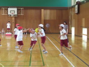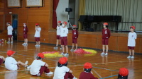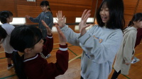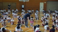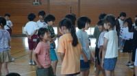 その後、「新しい仲間と絆を深めよう」という目標で「あいこジャンケン」をしました。あいこになったら絆が深まったということでハイタッチをします。これを異学年で交流して行いました。朝から大変盛り上がり、全校児童の絆が深まりました!