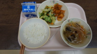 今日の給食はごはん、春雨スープ、昆布あえ、大豆とマグロのチリソースあえ、牛乳でした。給食でマグロを食べられるのはなかなかないことです。昆布あえとともに海を感じるメニューでした。
