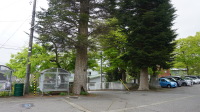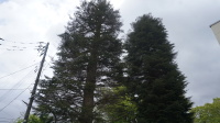 校門脇にあるもみの木が昨年途中から枯れ始めました。(写真左側) 樹木医から診察してもらい、存続できるよう努力しましたが、樹木内が空洞化しており、元の状態に戻すことは難しいとのことでした。