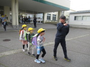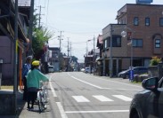 後方確認や横断歩道の渡り方など、一般の車が通る中で確認をしました。特に、バス通りは交通量が多く、スピードを出す車もい多いため、自転車には乗らず、押して移動することを徹底し、事故が起きないことを願っています。