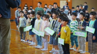 73日間の1学期を終え、本日 終業式を行いました。児童代表2名が「1学期がんばったこと」を発表しました。原稿を見ずに堂々と発表する姿に成長を感じました。その後、全校児童の1学期の活動をスライドで振り返り、校長より「夏休みにしかできないことに挑戦すること。水や車などの『事故』に気を付けること。2学期の始業式に元気に登校すること。」など、全校児童に向けて話がありました。充実した夏休みになることを願っています。