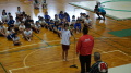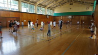 3年生は体育の授業で「ポートボール」をやっています。気温が高く、体育館の室温も高かったですが、安全面に配慮しながら進めることで、大変盛り上がっていました。