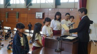 終業式の後、表彰を行いました。バレーボールは県大会で優勝し、8月に首都圏で行われる全国大会に出場します。また、相撲大会では中越学童大会にて優勝しました。これからのさらなる活躍を楽しみにしています。