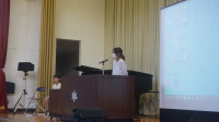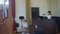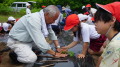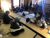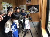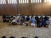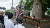 写真撮影の後は記念講話がありました。講師は、片貝伝統芸能保存会会長の小林光男様です。片貝の教育に関する歴史や、もみの木がいつ植えられたのかなどについて講話をしていただきました。