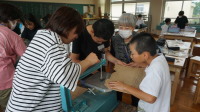 5年生は家庭科の学習で裁縫に取り組んでいます。本日は地域ボランティアの方よりご来校いただき、「玉結び」「玉止め」に挑戦しました。裁縫の基本技能ですが、細かい作業のため、一人一人にきめ細かい支援が上達につながります。地域の方の力をお借りすることが子どもたちの成長には欠かせません。ありがとうございます。