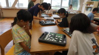 右は頭脳クラブです。オセロ対決をしています。学年に関係なく、頭脳を競い合っています。