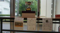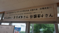 児童玄関には優勝カップや横断幕が飾られています。8月に東京で行われる全国大会での活躍を祈念しています!