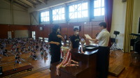 今日は新一年生を迎えて初めての全校朝会を行いました。