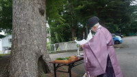 29日の朝に、伐採するもみの木に、これまでの感謝を込めてお祈りをしました。