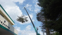 以前より学校だよりや町内会長会議等でお知らせしておりました「もみの木の伐採」ですが、本日 無事に作業を終えました。地域と学校のシンボルツリーであるため、何とか元気を取り戻してほしいと願っておりました。数年前より複数回樹木医に診てもらい、処置を繰り返してきましたが、倒木の恐れも出てきたことから、やむなく伐採することとなりました。ただし、在校生や卒業生など、多くの「もみのキッズ」がいます。今後は、切り株のオブジェや記念キーホルダーなどに形を変えて、もみのキッズ魂をつないでいきます。それに関わる活動も随時配信していきます。